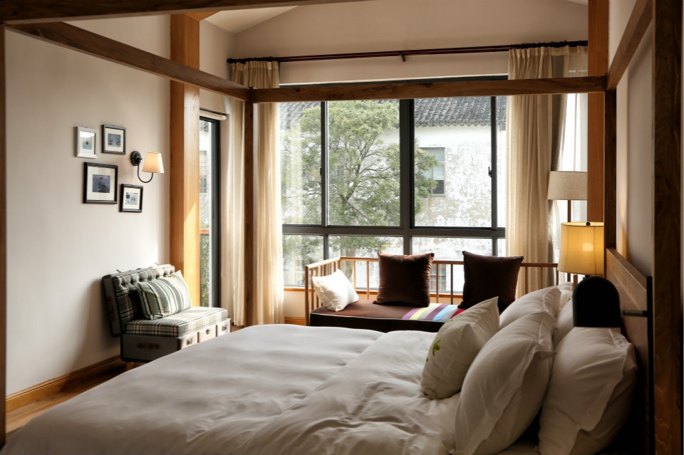 一桌一椅,一書一茶,室內簡約古樸,充滿古典人文的情調,為追求寧靜致遠,喜歡傳統文化的人所喜愛。庭院是自然的禮物,盡情享受藤架下靜謐的休閑時光,清風拂過竹林的濃蔭。采摘門前掛滿枝頭的果實,嘗一嘗鄉村的味道。最受孩子們歡迎的,就是在竹林之中探尋自然野趣了。