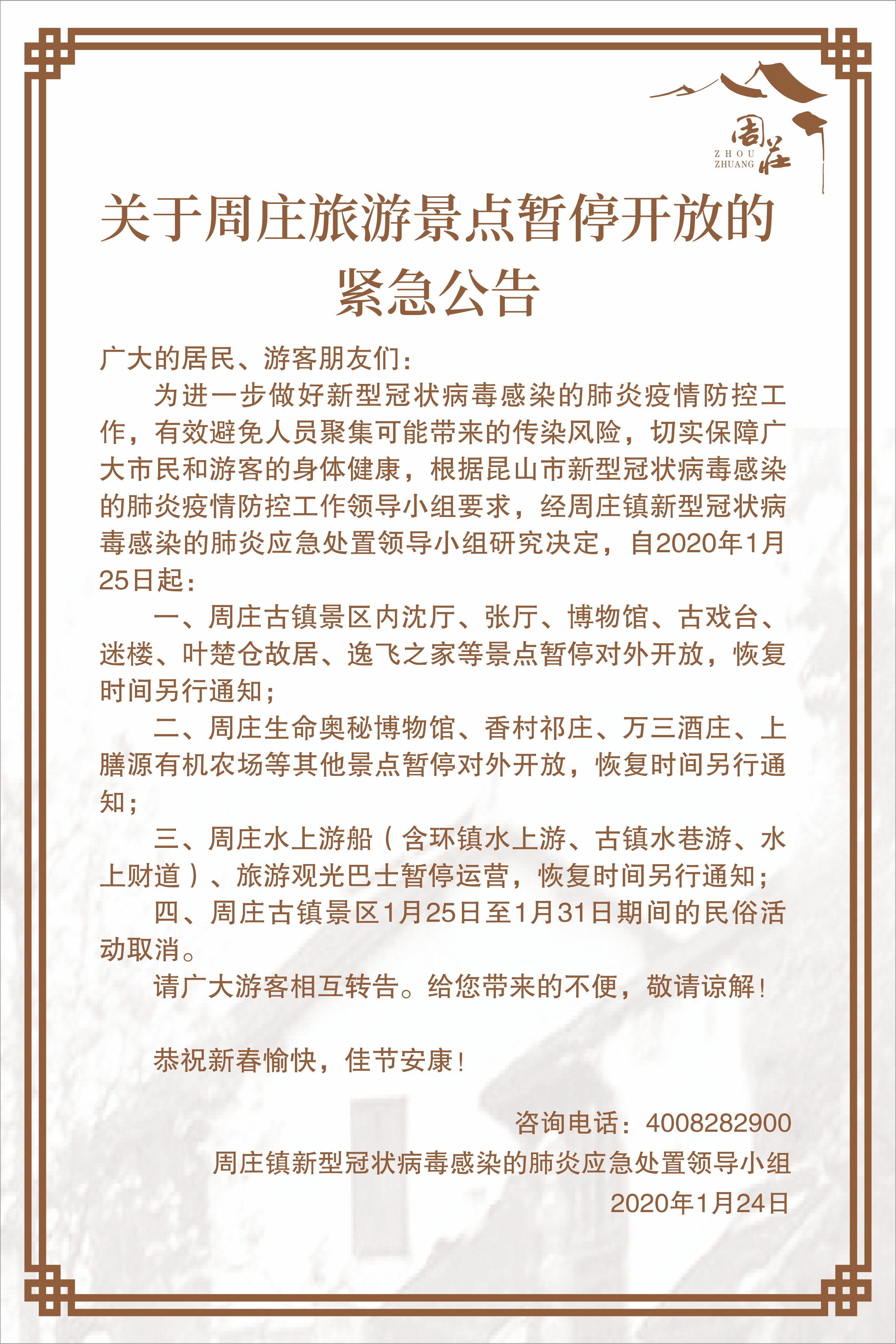 公告|關于周莊旅游景點暫停開放的緊急公告