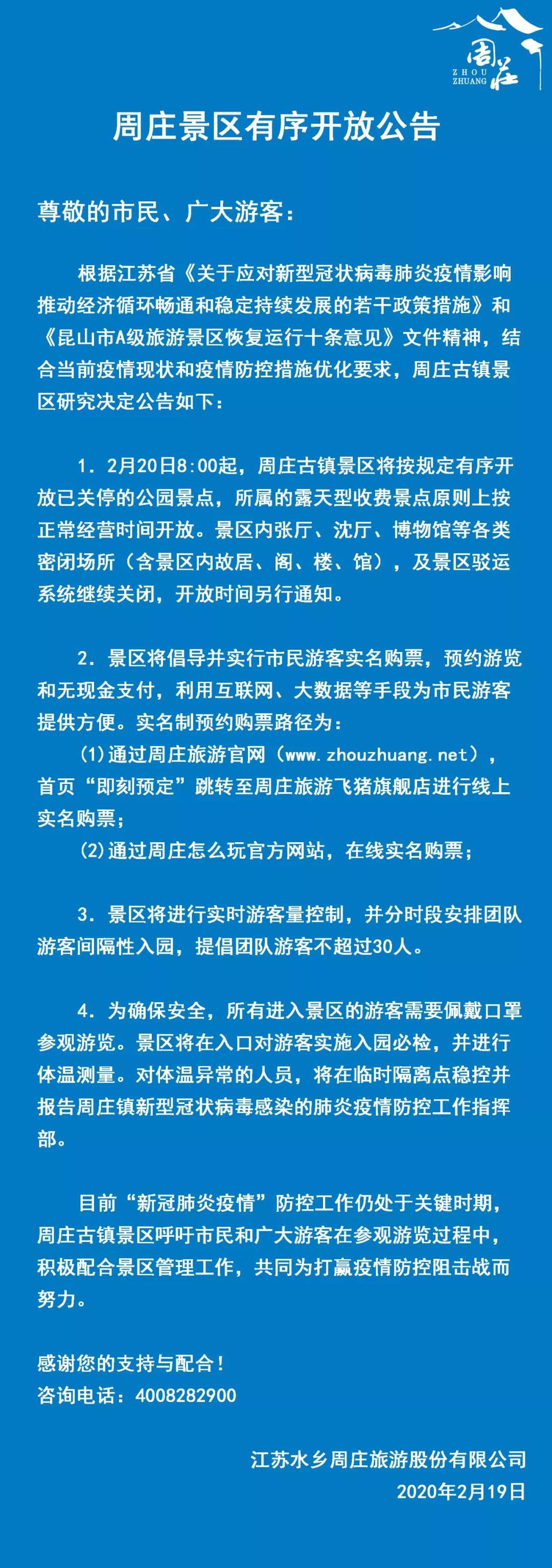 關(guān)于周莊景區(qū)有序開(kāi)放的公告