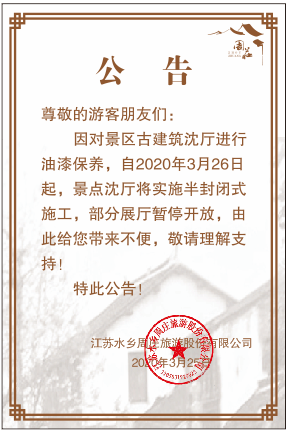 公告|周莊景區經營時間調整