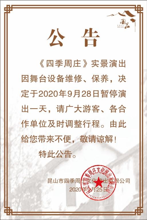 公告|《四季演出》今日暫停演出