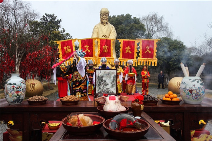 作為江南首富沈萬三的故鄉(xiāng),周莊一直是個(gè)財(cái)氣亨通的風(fēng)水寶地。大年初五子時(shí)接得“財(cái)神爺”,巳時(shí)設(shè)財(cái)?shù)馈⒋钬?cái)臺(tái)、敬財(cái)神,讓游客左腳踏金石右腳踏銀走上財(cái)富之道,沾染財(cái)神的財(cái)氣,換來一年好財(cái)運(yùn)。活動(dòng)結(jié)束后,品一杯元寶茶,將福氣財(cái)氣裝“回家”。