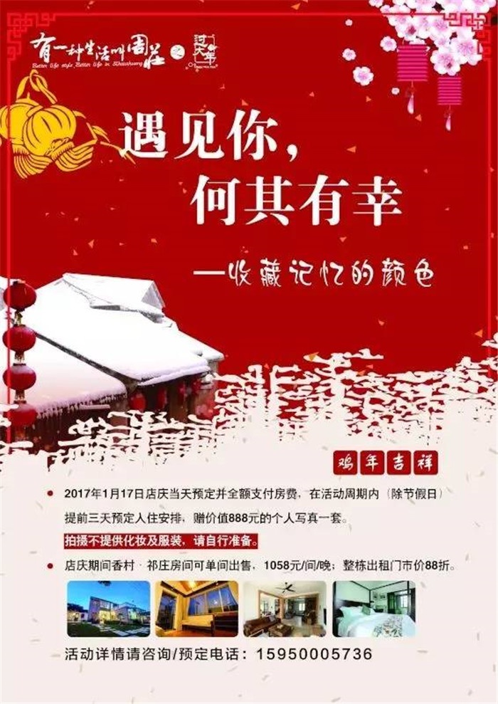 1、2017年1月17日店慶當天入住,贈價值888元的個人寫真一套。