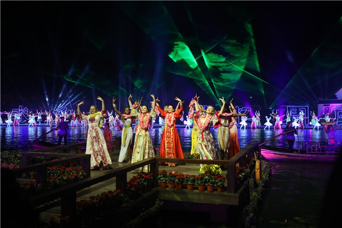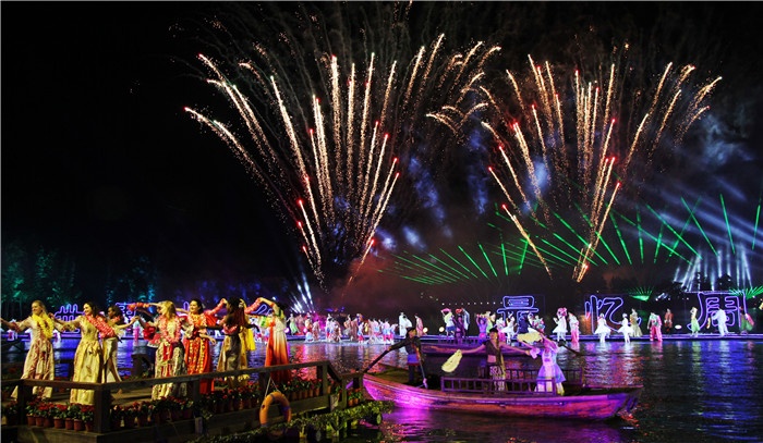 《周莊初見》、《最憶江南》、《世界水鄉》三個篇章。水之畔,天為幕,現代舞臺技術、傳統昆曲元素、動感體育表演和原生態水鄉居民生活融為一體,唯美的演出為中外嘉賓展示了第一水鄉的古韻新姿。