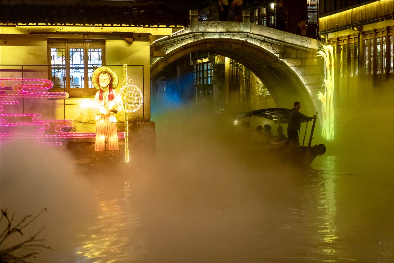 乘坐手搖船夜游水上周莊,伴著槳聲燈影,感受流水潺潺,看紅燈籠倒映在水中,影影綽綽的美好。去1086慢生活街區,感受醉意微醺后的朦朧。夜晚的張廳張燈結彩,很是喜慶,步入其中可以感受古人洞房花燭夜的幸福美好。