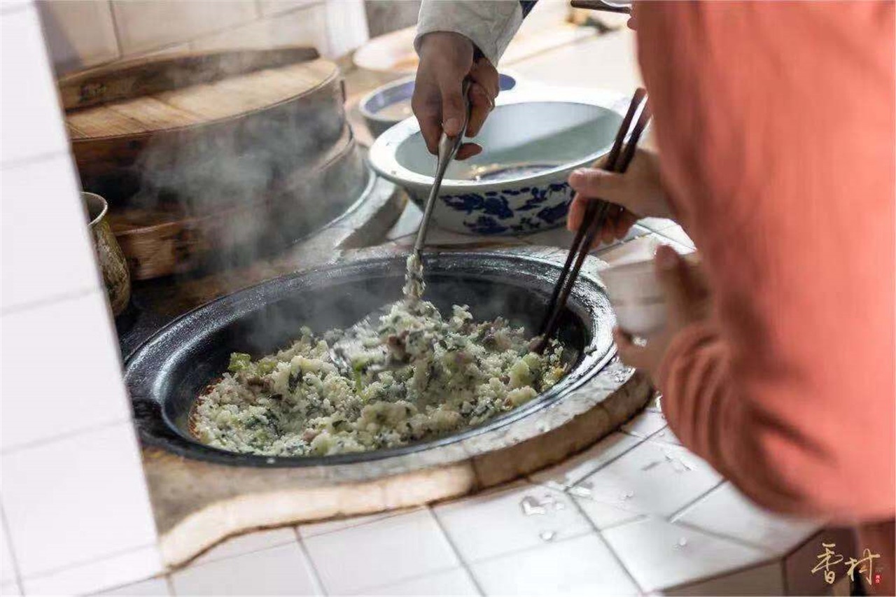 到了香村,不可不品嘗一下這里的柴火飯。一家人圍著鍋灶忙碌,感受炊煙繚繞的煙火氣。好吃的鍋巴飯或是咸肉菜飯,更是讓人倍感懷念。