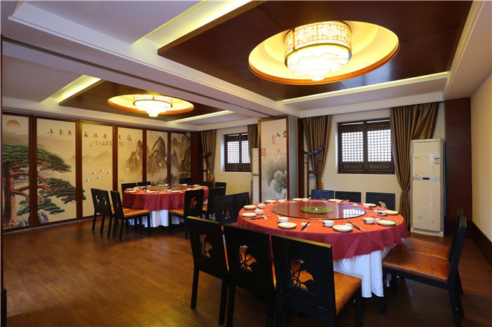 走入沈廳酒家,如入水鄉人家。餐廳分樓上樓下兩部分,能容納400余人同時就餐。樓下為宴會廳,樓上有過街騎樓連接東西兩部分,東部樓口為包廂,裝飾壓制,環境舒適;西部兩層餐廳臨河傍水,波光橋影,水鄉風光,盡收眼底。