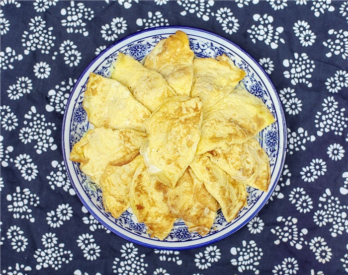 蛋餃,因酷似金元寶,而成為年夜飯飯桌上的必備之選。它不僅賣相甚好,味道也甚美。蛋皮裹著肉餡,一口咬下去湯汁四溢,鮮到眉毛都要掉下來。