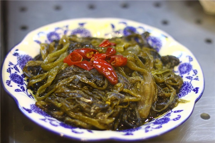 阿婆菜是腌制的代表。春天油菜花抽苔的時(shí)候,取下孕花的嫩苔,以清水洗凈,曬到半干后,用鹽腌漬,再塞入瓶口。時(shí)間是最好的調(diào)味劑,三兩月過去,阿婆菜特殊的口感成就了周莊獨(dú)有的味覺。至今,你仍能在全國各地知名酒店里瞧見周莊咸菜這一道菜。周莊的味覺,早已成為了它名揚(yáng)四海的另一種方式。