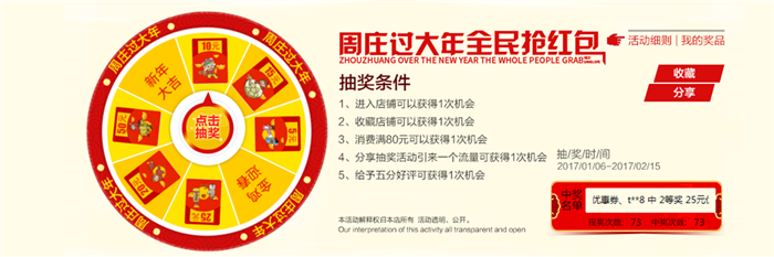 1月15日-2月15日,通過天貓旅游旗艦店、同程網、攜程網、驢媽媽訂購周莊過大年產品,在預定前搶紅包,即可獲得隨機金額紅包,用于抵扣支付購買周莊過大年產品!