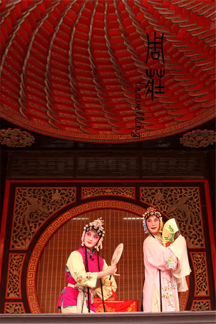 據《貞豐志》記載,自沈萬三的時代起,周莊四季曲音不絕,莊內有城隍廟、北柵二處古戲臺,名列“周莊八景”。今年年中的時候,歷時三個月,周莊古戲臺進行了升級改造。繞過走道,進入戲院,屬于周莊古戲臺全新的一切,豁然開朗。余音繞梁之下,尋一處傘下雅座,又或是暢游在古雅戲院,聆聽著水磨腔的意蘊悠長。現如今古戲臺敞開大門,迎接五湖四海的游客,可以在與本地老人吳儂軟語的交流中,體驗最正宗的周莊生活氣息。