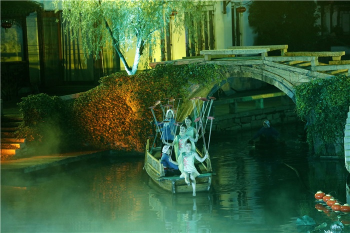作為中國第一部呈現江南原生態文化的水鄉實景演出,《四季周莊》以春夏秋冬為背景、以浪漫愛情為線條、以周莊民俗為筆觸,描繪著一場橫亙時間與空間的周莊視覺盛宴。