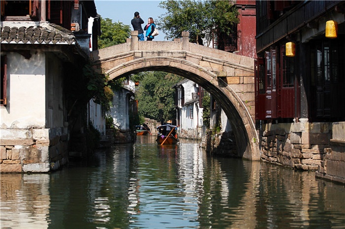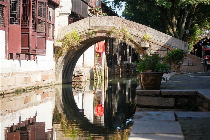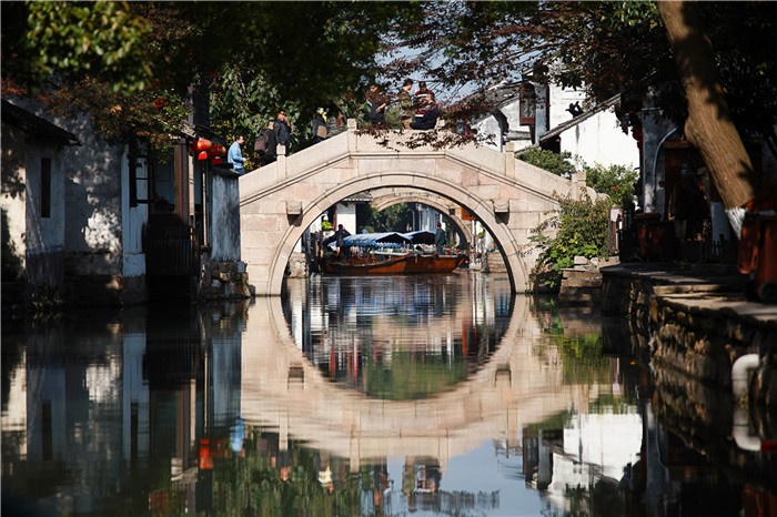 ★鏡頭偏愛周莊的橋。當取景小船搖過歲月滄桑的河埠廊坊,經過臨水的穿竹石欄,岸邊斑駁腳下悠閑的行人都好似上帝精心安排的布景。如果你想感受更多“吳樹依依吳水流,吳中舟楫好夷游”的意境,那么,古鎮上14座形態各異的古橋,都是不二之選。