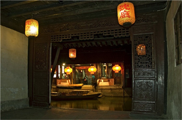 從船上向河岸一溜看去,好像凡是比較像樣的居舍門口都有自用碼頭。這是不奇怪的,河道就是通衢,碼頭便是大門,一個大戶人家哪有借別人的門戶迎來送往的道理?遙想當年,一家人家有事,最明顯的標志是他家碼頭口停滿了大大小小的船只,主人便站在碼頭上頻頻迎接。我們的船在一個不小的私家碼頭停下了,這個碼頭屬于一所挺有名的宅第,現在叫做“沈廳”,原是明代初年江南首富沈萬三的居所。