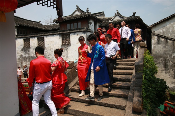 婚禮結束后,新人們在竹編坊、土布坊、南湖灣情人棧道等頗具周莊特色的古鎮體驗點里,留下了幸福的合影。享受著水鄉的浪漫氛圍、感懷著江南的純樸生活、體會著正統的水鄉婚俗,以“中國第一水鄉”周莊為背景的婚紗照,定會讓新人們一生難忘。