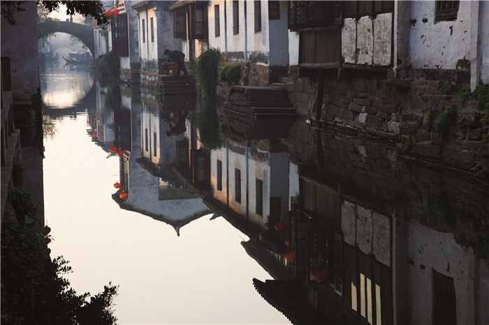 古鎮(zhèn)區(qū)內井字形河道交錯,街巷較窄。