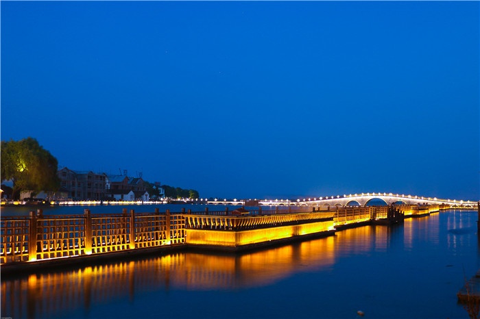南湖秋月園毗鄰周莊南湖。南湖是周莊鎮(zhèn)南瀕臨的一片大湖,湖面煙波浩渺,一望無際。南湖秋月園就坐落在南湖畔,是典型的園林式建筑,有竹有花有橋有水上棧道。園內有一家名為月上·古箏會館的主題藝棧,您可以在這里享受古樂,感受閑靜的古鎮(zhèn)生活。
