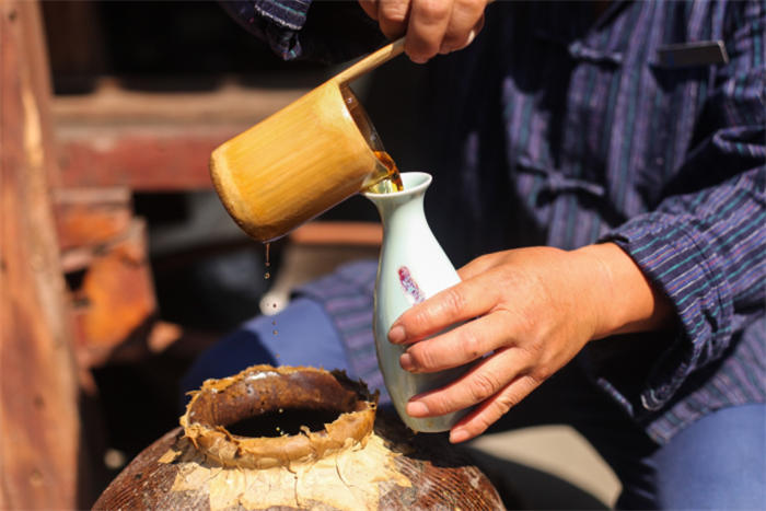 依河而存,因水成村的祁浜村,形態古老。據鎮志記載,南宋抗金名將韓世忠曾率水軍在此安營扎寨,部分老兵安家于此,樹旗為識,稱此為“旗莊”,后由“旗莊”逐步衍化為“祁莊”。與軍旅的淵源,為祁莊帶來飲酒的風氣;本地豐饒的果糧物產與周莊數片湖區的清澈水域,為好酒的釀造創出了條件。