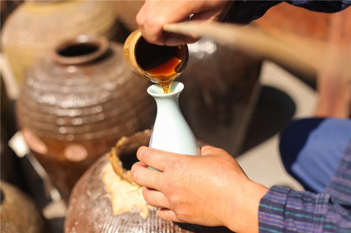 而今,勤勞的周莊人繼續(xù)沿用傳統(tǒng)的手作工藝,從選料到制作、從浸米到發(fā)酵、從壓榨到封壇,把古老的智慧充分傳承,釀造出一壇壇香氣濃郁、醇厚爽口的萬三酒。