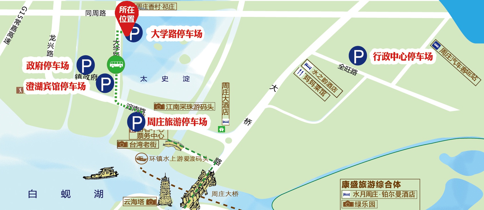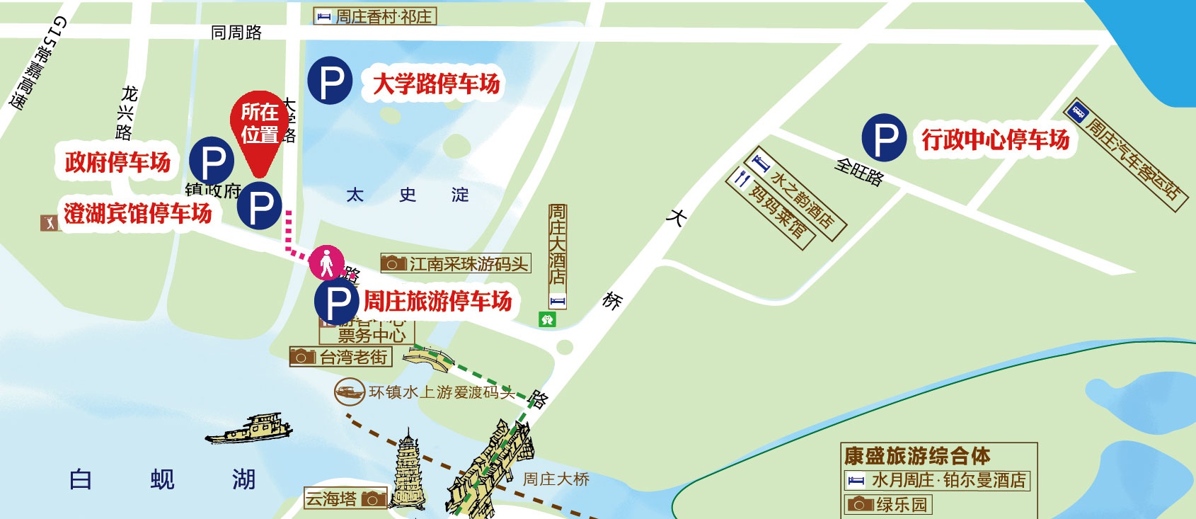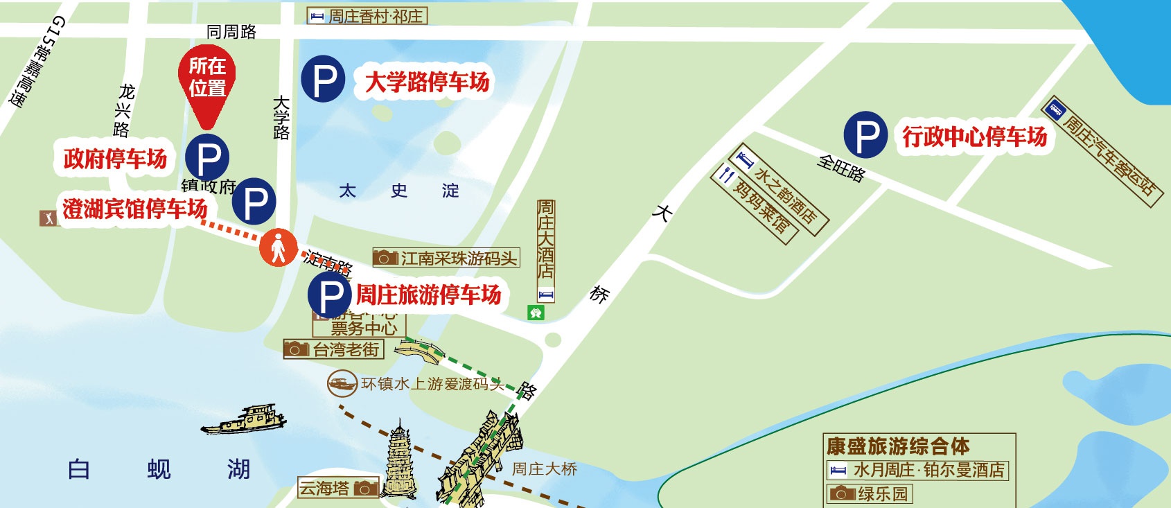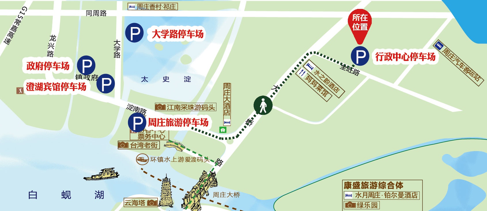 6、澄湖賓館停車場、行政中心停車場、政府停車場的游客請步行至周莊旅游停車場;大學路停車場免費接送至周莊旅游停車場。