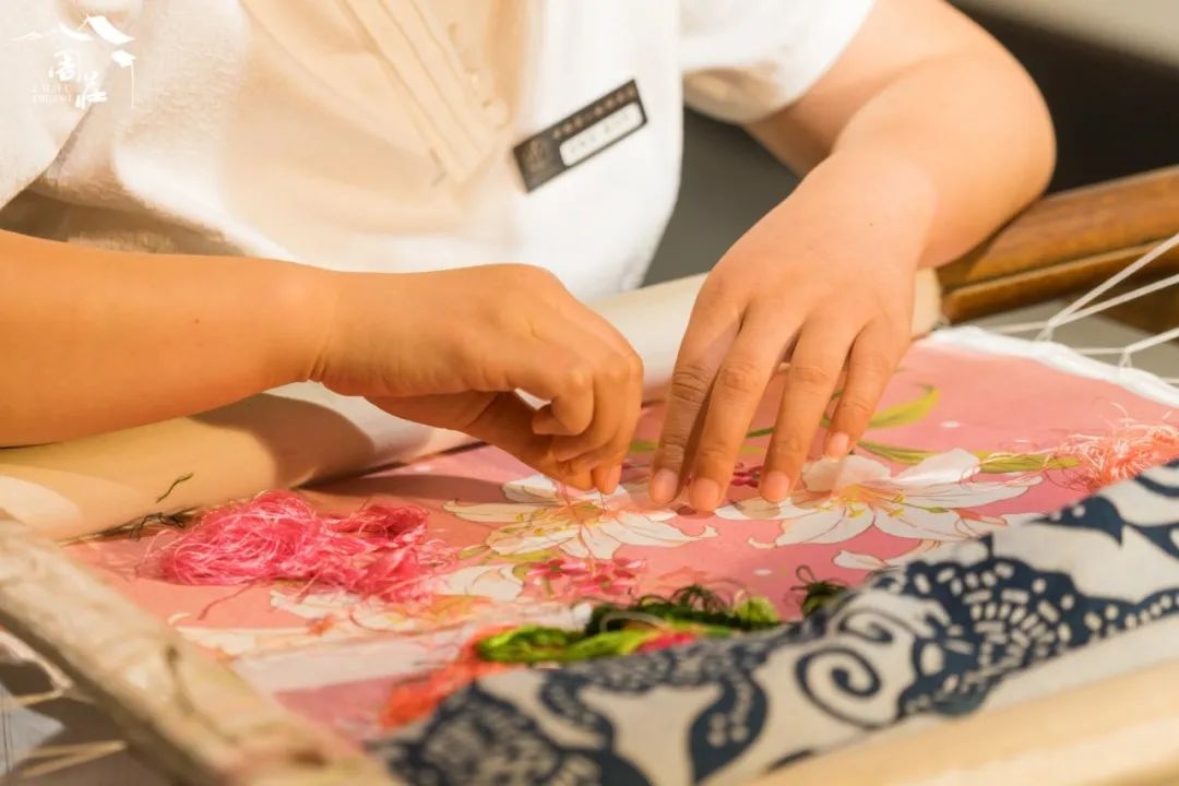 繡藝坊打量著夜色的溫柔,女紅之巧十指春風(fēng),或服飾、或布面、或妝奩,纖毫栩栩便繡出萬千氣象,直讓人漾了心神,看不真切。