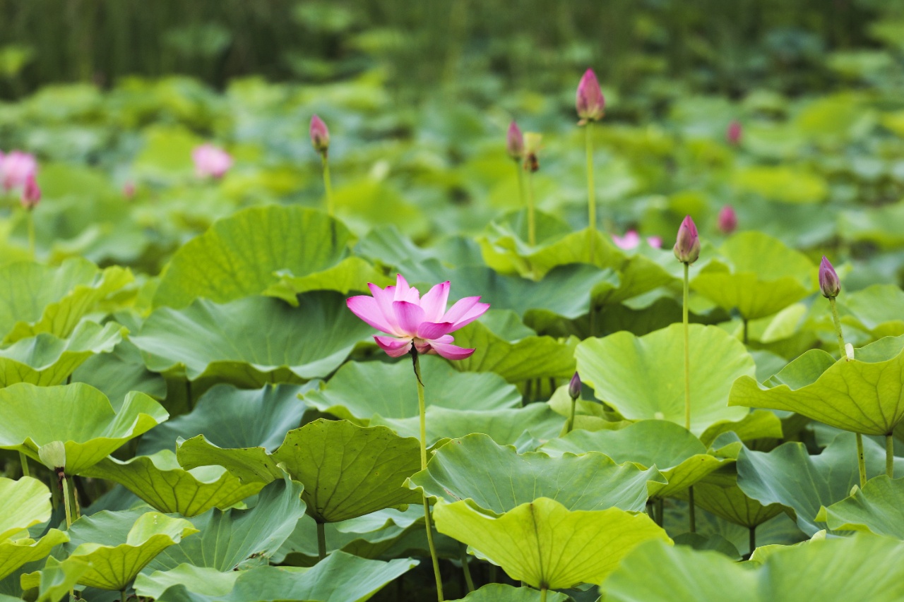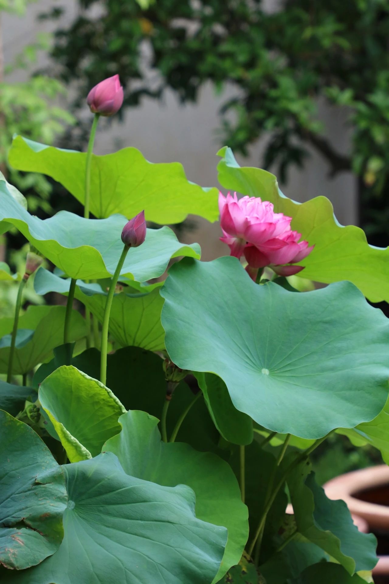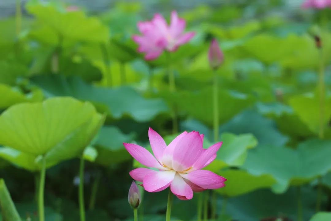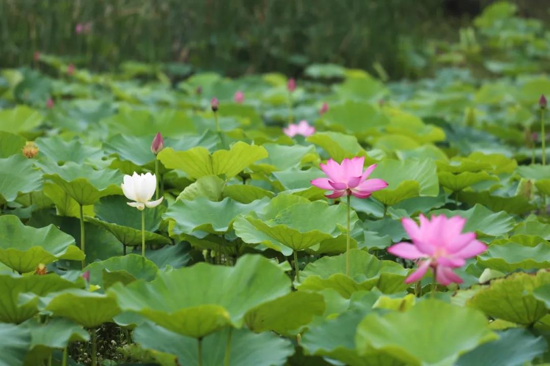 香村書坊前翠綠的荷葉層層疊疊,錯落有致,花苞探頭而出,爭先恐后映入眼簾,千姿百態、嬌羞可人。 //攝于香村·祁莊