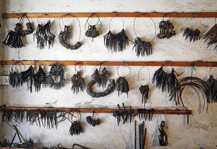 手工打制鐵器件已傳承千年。匠師們站在熊熊的火爐房,揮起鐵錘,叮叮當當,錘打出鉗鉤鐮鏟。風箱急,爐火旺,舀一匙鐵水,補進鐵鍋破漏處,讓人看得出神。